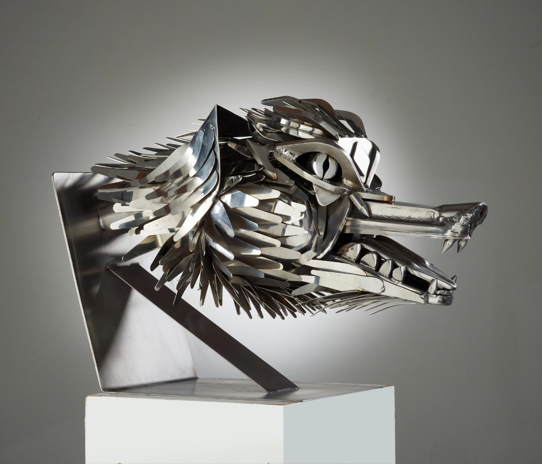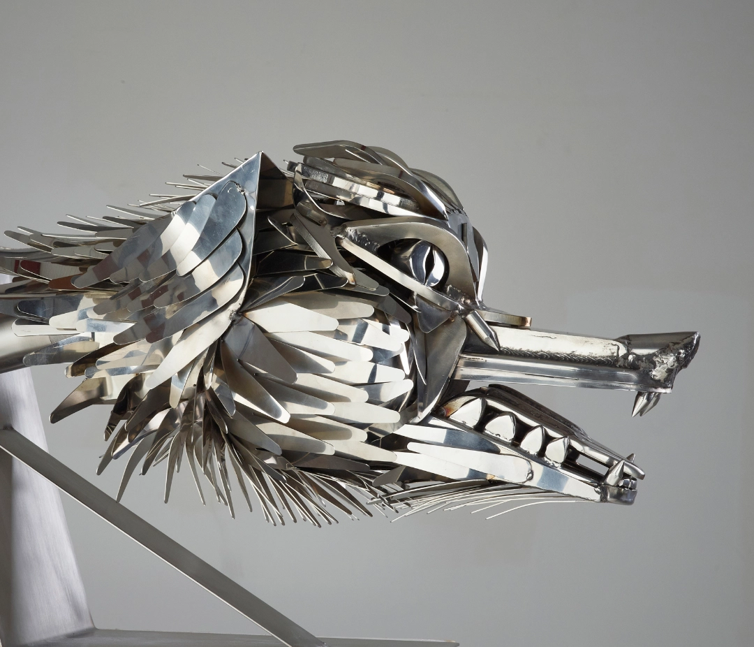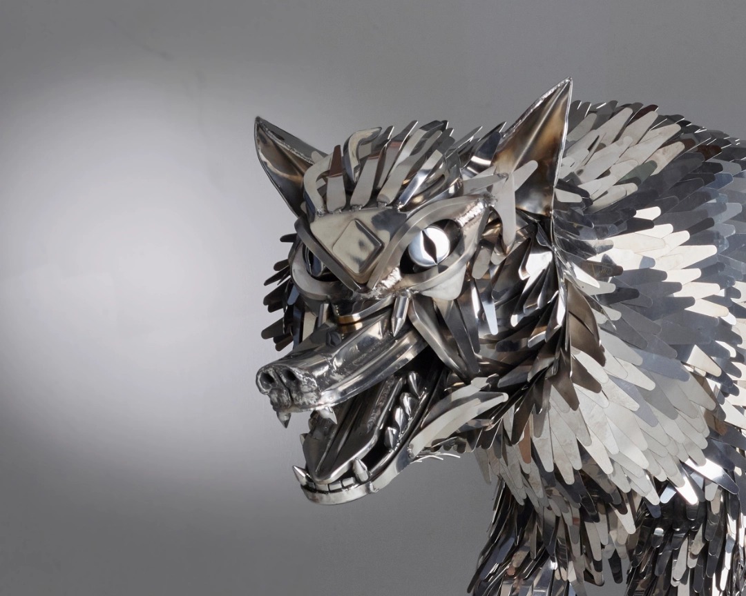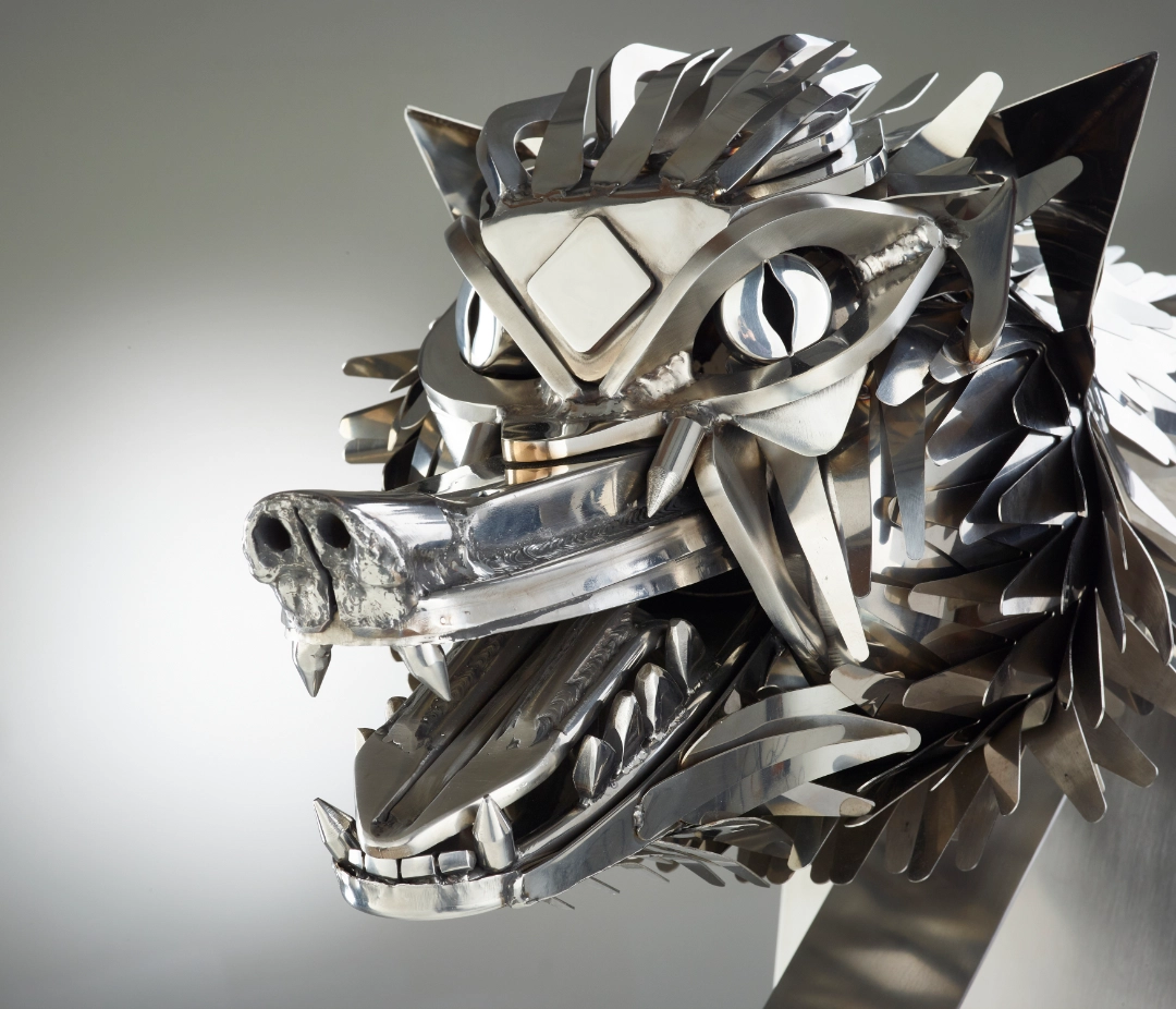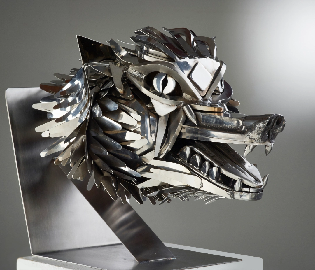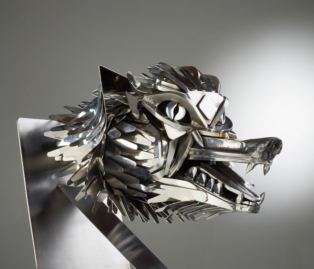 “Having heard of the skill and professionalism of Oliver Wellings I commissioned a bespoke Stainless-Steel, life like howling wolf which I had been unable to find elsewhere.
